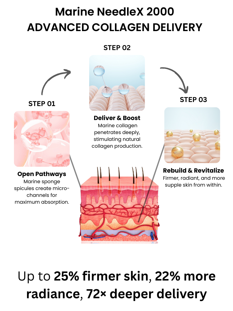 - Superior Penetration Technology: Marine spicules deliver up to 72x increased skin penetration compared to standard topical applications